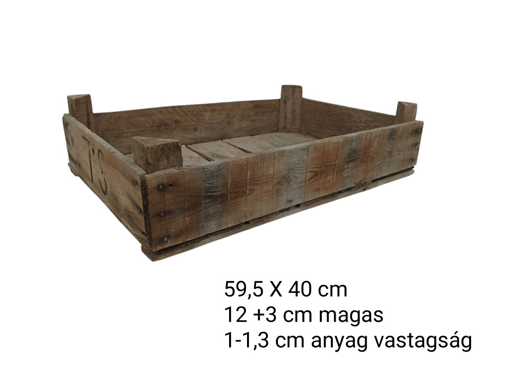 59,5 x 40 cm és 12 + 3 cm magasak. Anyagvastagság 1 - 1,3 cm.